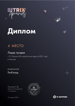 В процессе работы с компанией Генклауд мы задокументировали в виде схем и технического задания наши процессы и их реализацию в Битрикс24. Затем, совместно, сделали внедрение по техническому заданию с обучением. Не все, что описали в техническом задании, оказалось удобно, но при сопровождении процессы были подстроены под нас. Нам понравилась оперативность реакции и профессионализм сотрудников компании, в планах дальнейшая работа по интеграции 1С и Битрикс24, а также подключение бОльшего числа сотрудников.